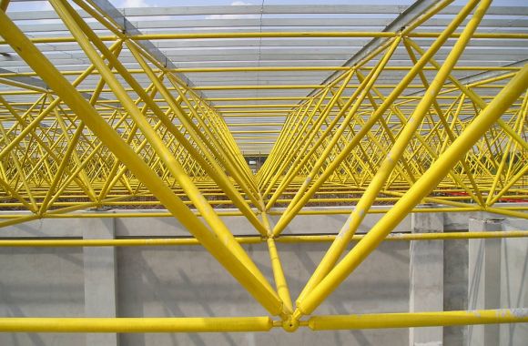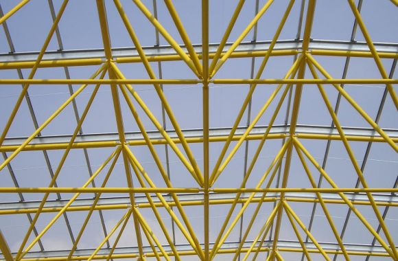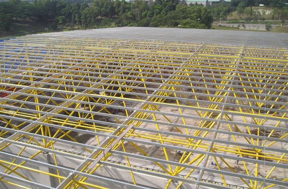 The client wanted a grand spaceframe to go with the overall look of the building. In addition, the building needed to have a wide span roof without any columns. Bearing this consideration in mind, Multimedia Engineering provided a square-shaped pitched roof. The spaceframe specified is the most commonly used spaceframe geometry and the only type of geometry that is appropriate for first generation systems. The spaceframe system consists of tubular steel members and spherical ball joints. The members are connected to the joints by means of cones welded to the end of the tubes, through which a tensile bold is screwed into the ball joint by means of spanner sleeve. Thus compression in the tube is transferred into the ball node by direct bearing through the cone and spanner sleeve onto the machined face of the ball. Tension in the tubes is transferred into the ball node by tension through the cone and bolt. The roof created a feeling of openness, spaciousness and natural light - something in line with the client's requirement. The spaceframe system allowed the designer to express the shape of a climatic envelope in exciting and diverse ways.