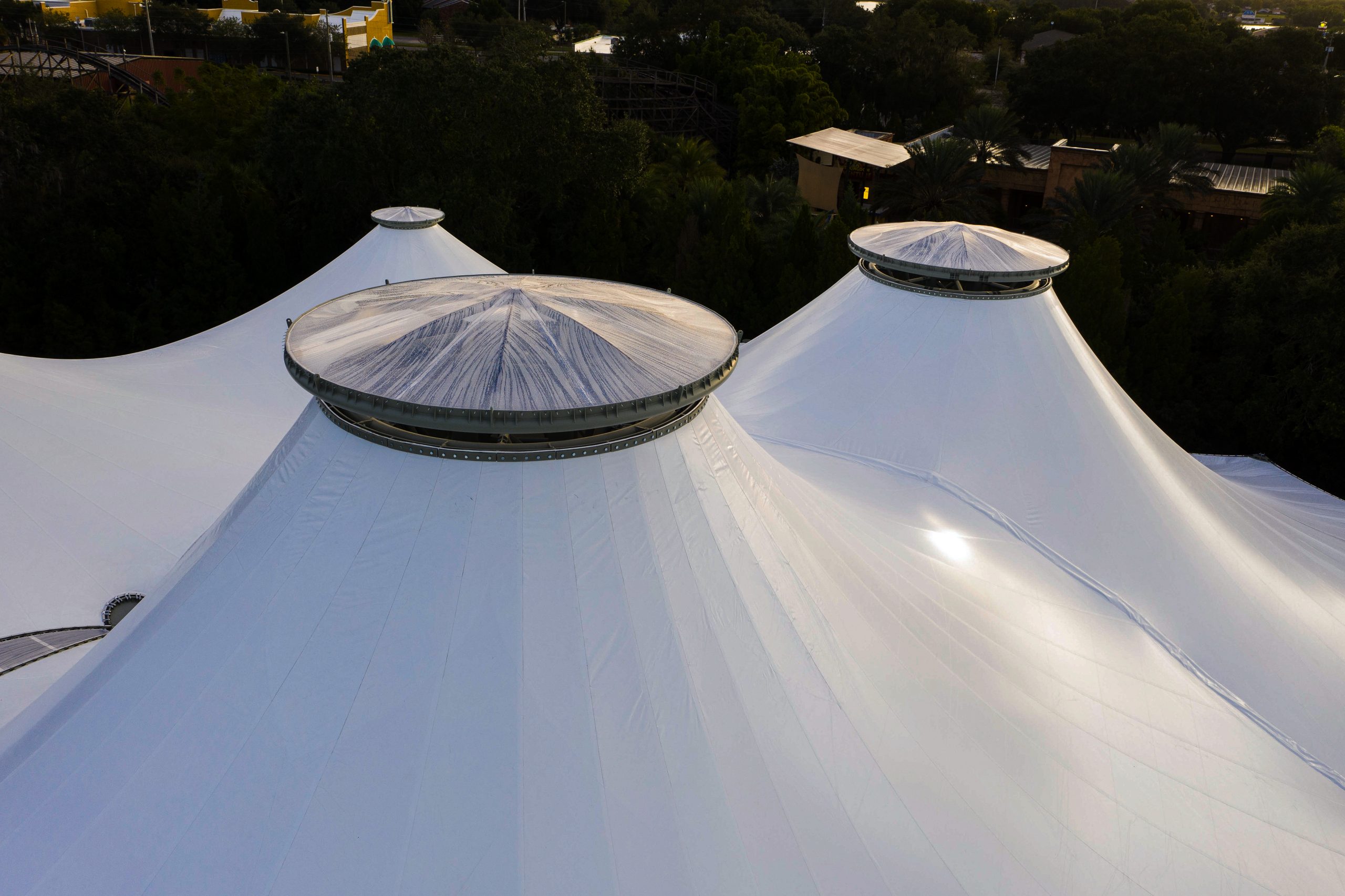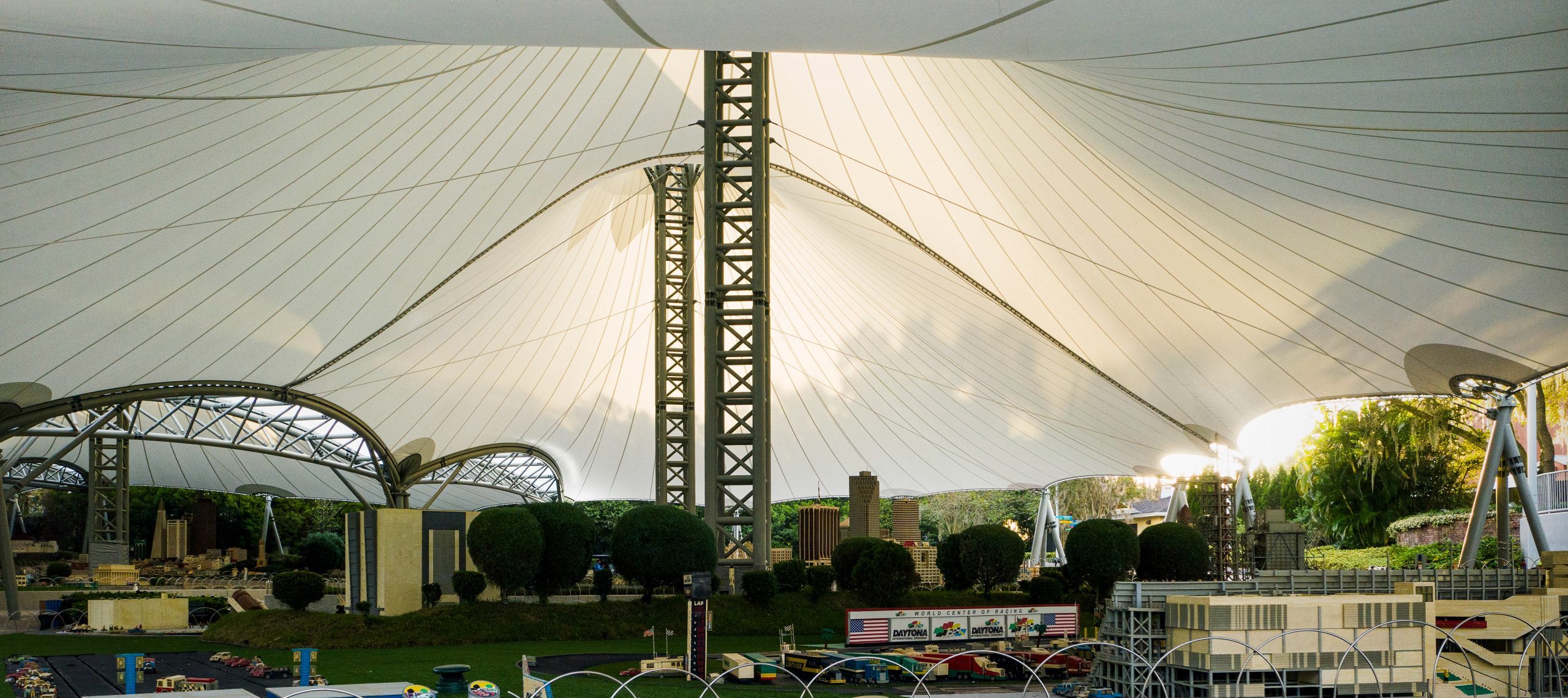Combining both the ADAS® Tensile Membrane and ETFE skylight systems, this 5700m² (61,000 ft²) lightweight canopy offers weather protection for this MINILAND while allowing for ample visibility. Expertly engineered using CFD simulations, it withstood both Hurricanes Ian(2022) and Milton(2024) with minimal damage