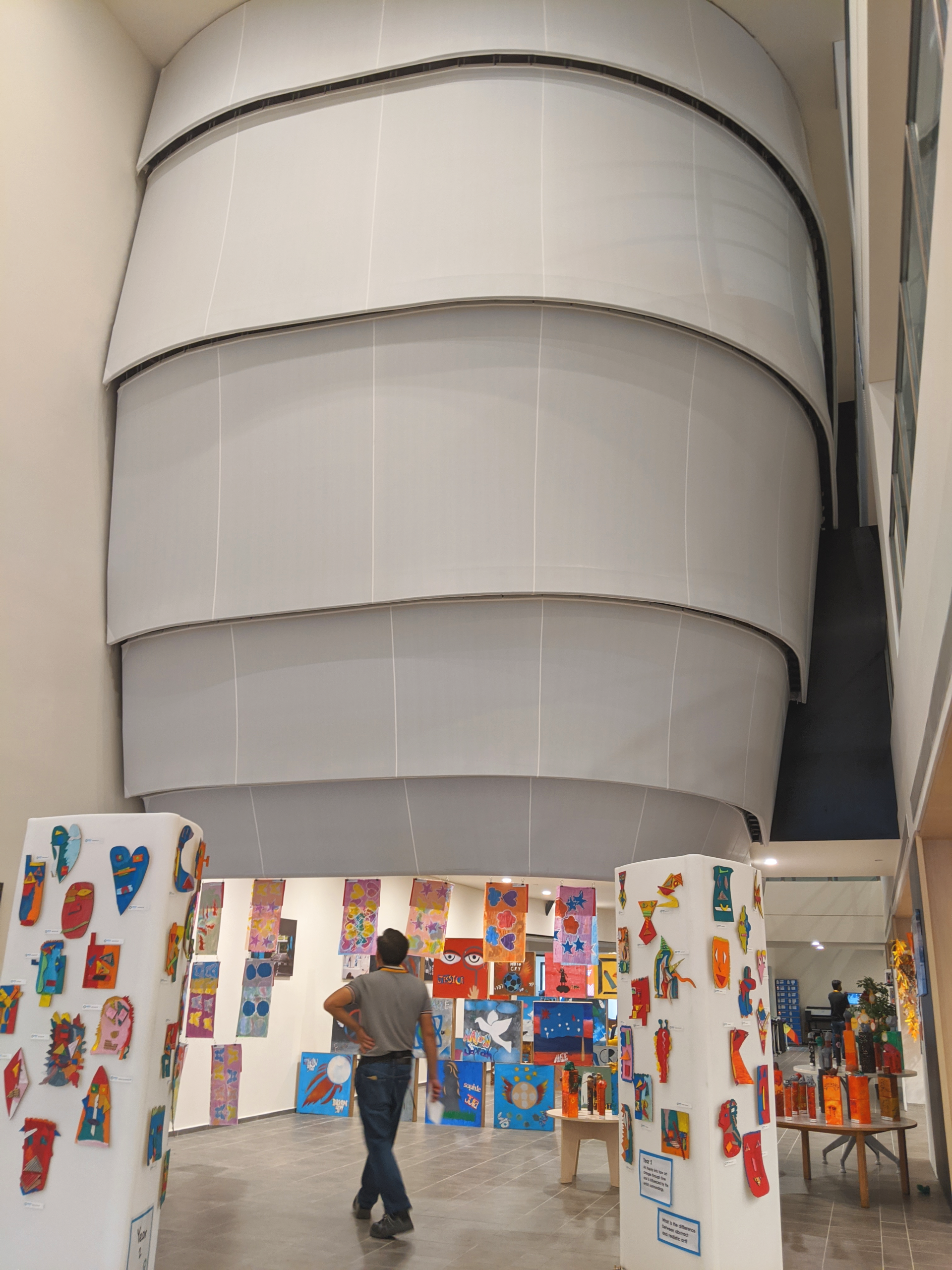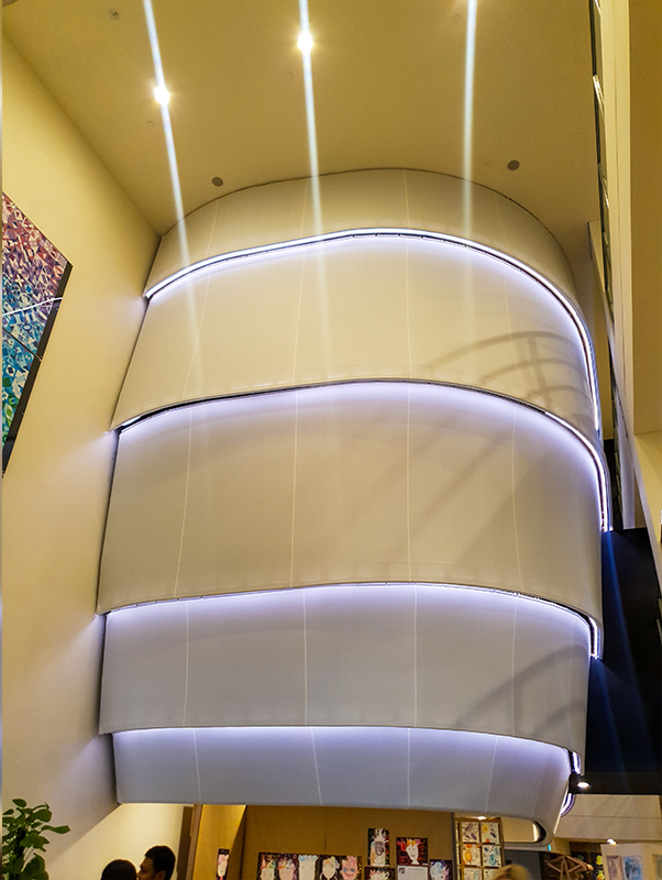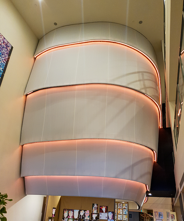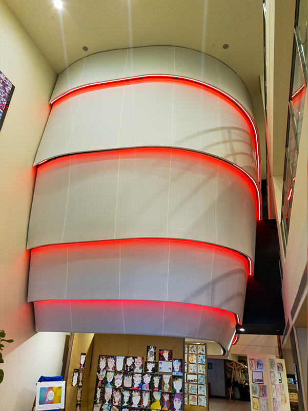 This fabric façade project aimed to enhance brand identity and provide aesthetically pleasing cladding for an existing steel structure at Nexus International School. Encompassing a connecting bridge and an acoustically insulated music room, the façade is integrated with colour-changing lights, adding vibrancy to the space. The ADAS® Fabric Façade solution offers a lightweight, organic, and dynamic addition to the school's internal hub, transforming the previously mundane area into an engaging and visually appealing environment.