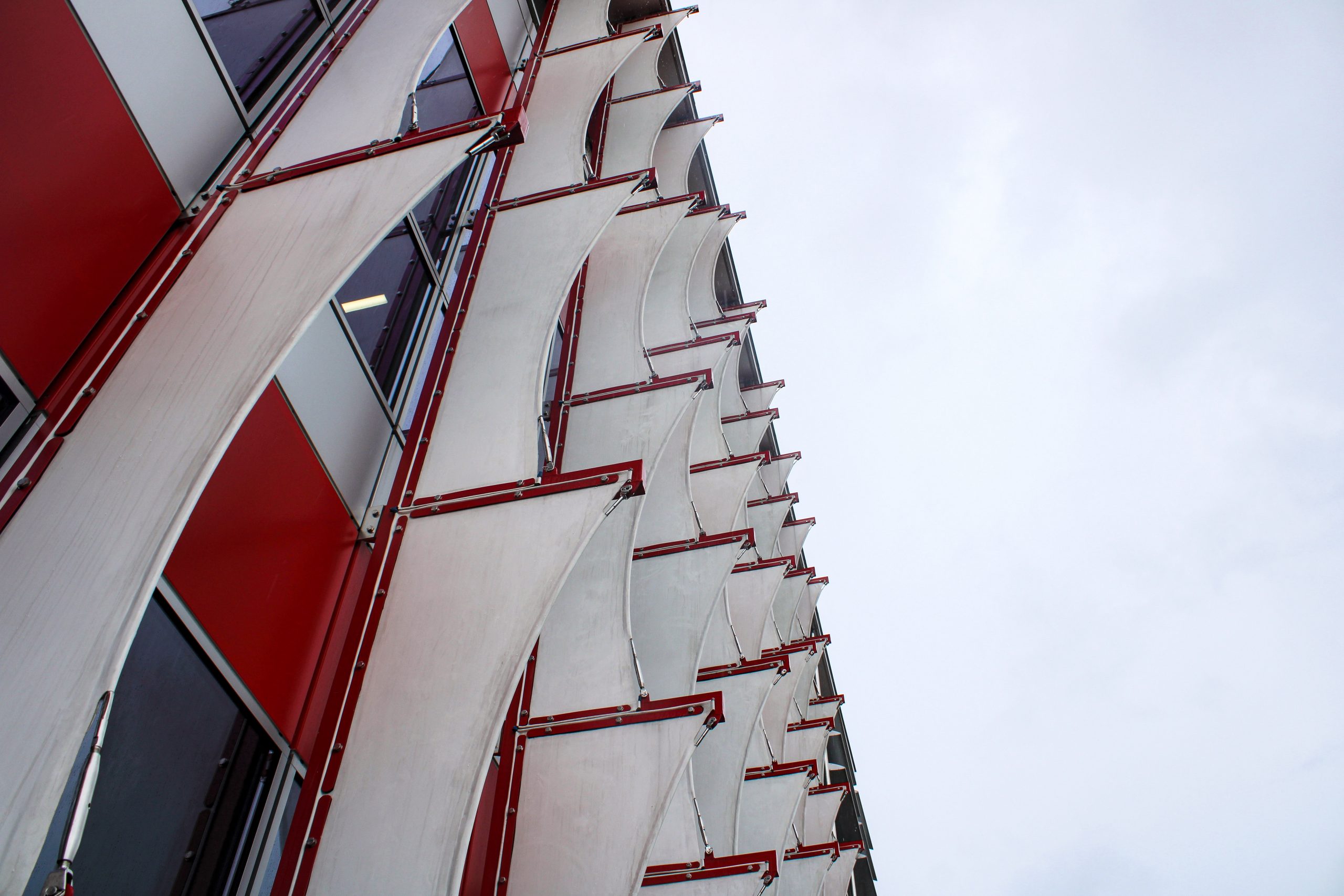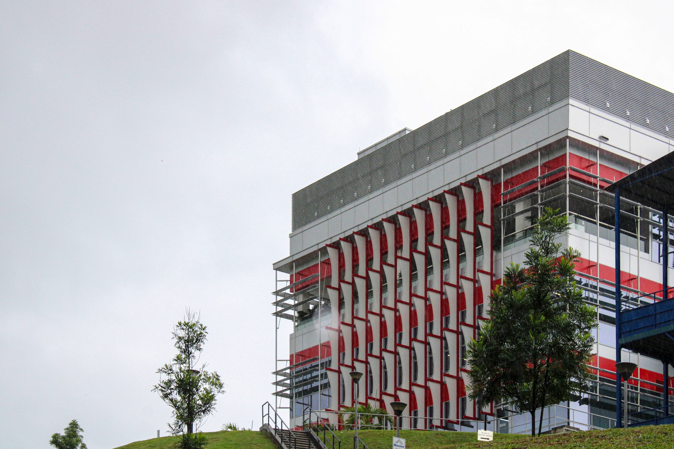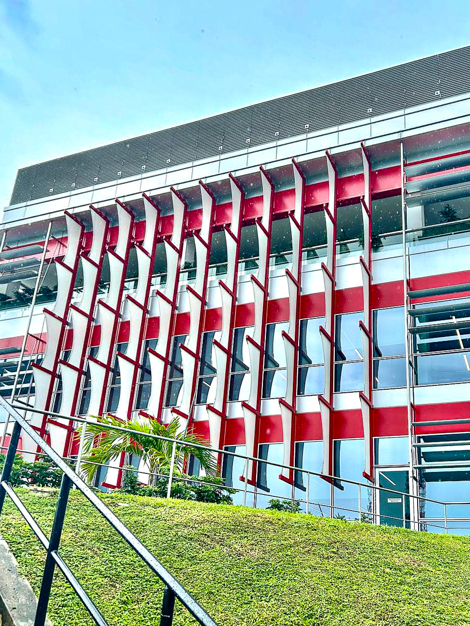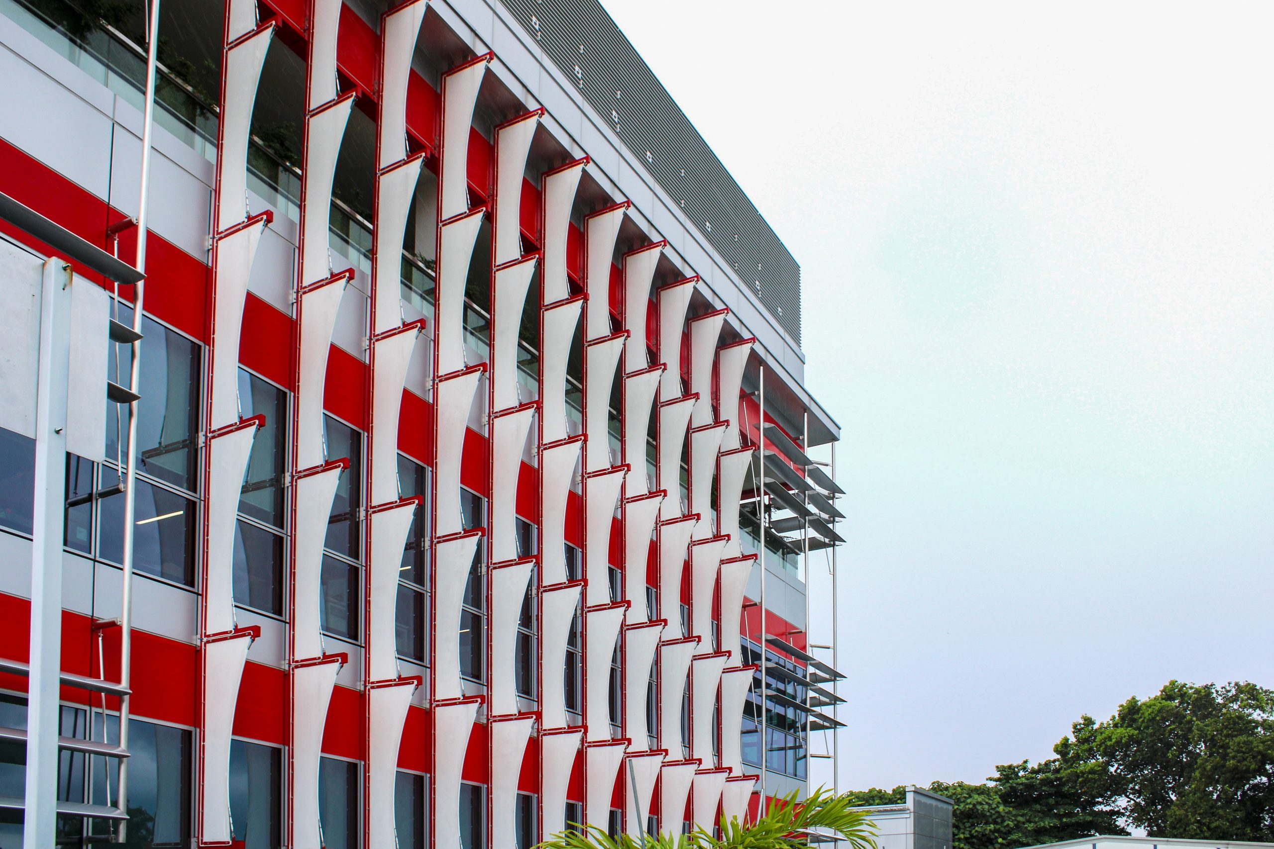 Situated in Singapore's industrial district, the vertical fin façade enhances thermal comfort inside while adding a visually appealing and functional architectural element to the exterior. The modular, lightweight fabric panels ensure a quick and efficient installation process.