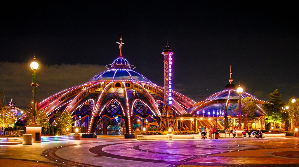 The way tensile structures interact with light is unique—and a major asset in theme parks that operate from morning into evening. During the day, PTFE’s matte white surface reflects sunlight, creating a cool, shaded space underneath. At night, these same surfaces can be up-lit or backlit, transforming into glowing sculptural forms that contribute to nighttime ambiance.